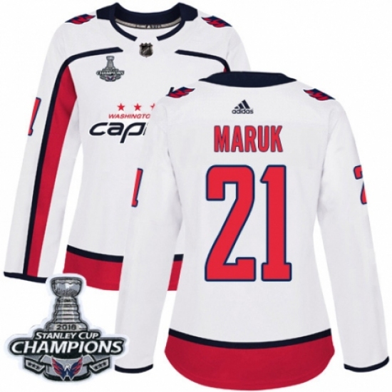Women's Adidas Washington Capitals #21 Dennis Maruk Authentic White Away 2018 Stanley Cup Final Champions NHL Jersey