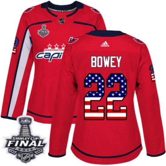 Women's Adidas Washington Capitals #22 Madison Bowey Authentic Red USA Flag Fashion 2018 Stanley Cup Final NHL Jersey