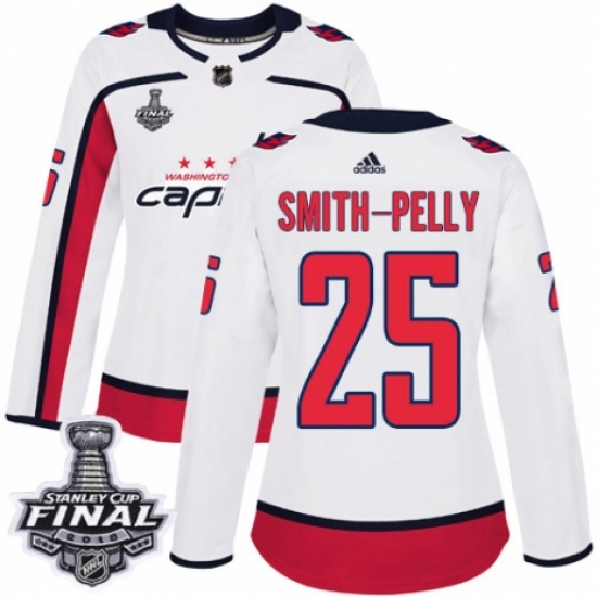 Women's Adidas Washington Capitals #25 Devante Smith-Pelly Authentic White Away 2018 Stanley Cup Final NHL Jersey