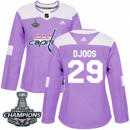Women's Adidas Washington Capitals #29 Christian Djoos Authentic Purple Fights Cancer Practice 2018 Stanley Cup Final Champions NHL Jersey
