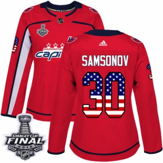 Women's Adidas Washington Capitals #30 Ilya Samsonov Authentic Red USA Flag Fashion 2018 Stanley Cup Final NHL Jersey