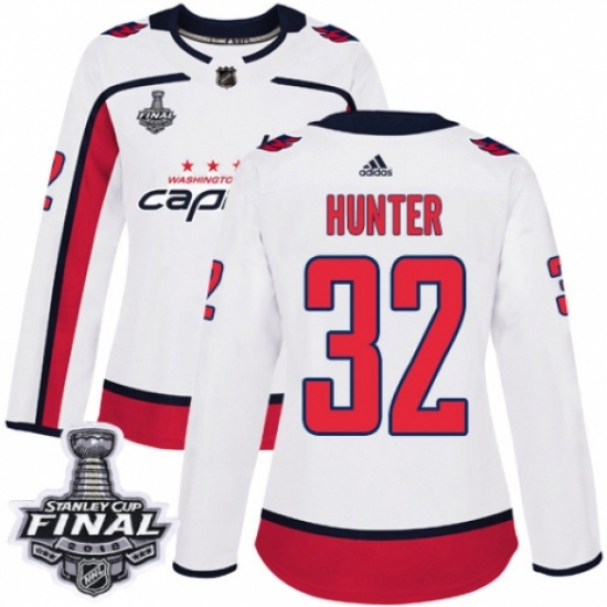 Women's Adidas Washington Capitals #32 Dale Hunter Authentic White Away 2018 Stanley Cup Final NHL Jersey