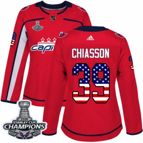 Women's Adidas Washington Capitals #39 Alex Chiasson Authentic Red USA Flag Fashion 2018 Stanley Cup Final Champions NHL Jersey