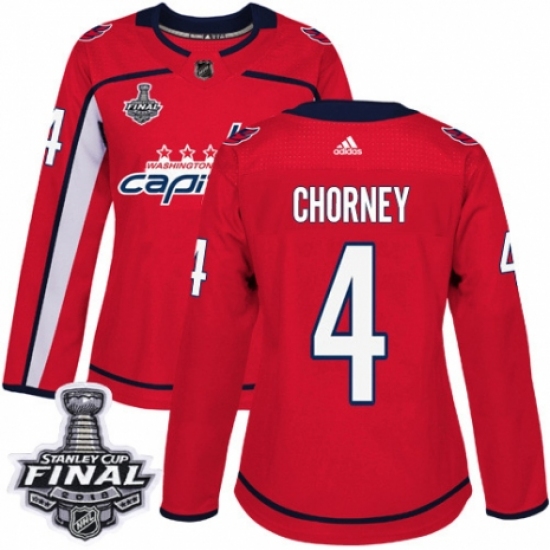 Women's Adidas Washington Capitals #4 Taylor Chorney Authentic Red Home 2018 Stanley Cup Final NHL Jersey