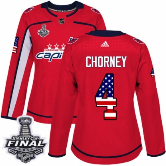 Women's Adidas Washington Capitals #4 Taylor Chorney Authentic Red USA Flag Fashion 2018 Stanley Cup Final NHL Jersey