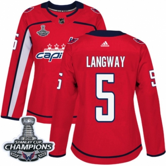 Women's Adidas Washington Capitals #5 Rod Langway Authentic Red Home 2018 Stanley Cup Final Champions NHL Jersey