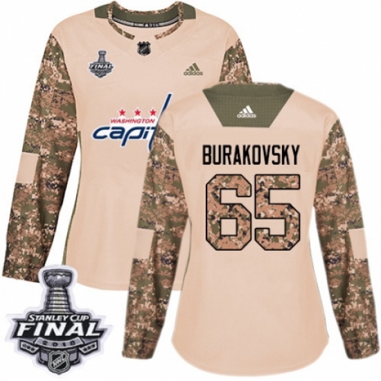 >Women's Adidas Washington Capitals #65 Andre Burakovsky Authentic Camo Veterans Day Practice 2018 Stanley Cup Final NHL Jersey