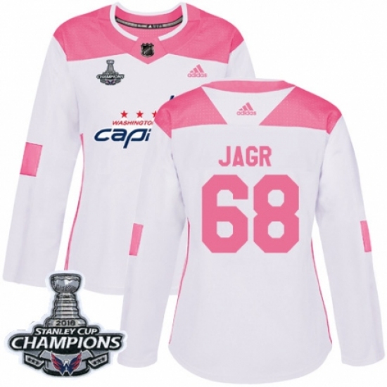 Women's Adidas Washington Capitals #68 Jaromir Jagr Authentic White Pink Fashion 2018 Stanley Cup Final Champions NHL Jersey