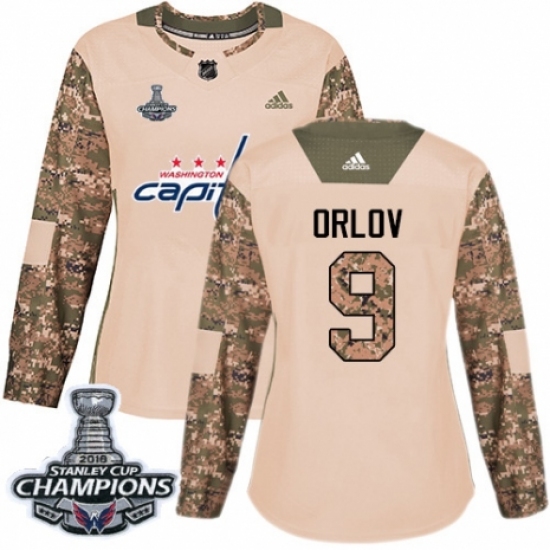 >Women's Adidas Washington Capitals #9 Dmitry Orlov Authentic Camo Veterans Day Practice 2018 Stanley Cup Final Champions NHL Jersey