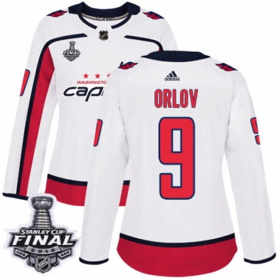 Women's Adidas Washington Capitals #9 Dmitry Orlov Authentic White Away 2018 Stanley Cup Final NHL Jersey