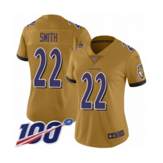 >Women's Baltimore Ravens #22 Jimmy Smith Limited Gold Inverted Legend 100th Season Football Jersey