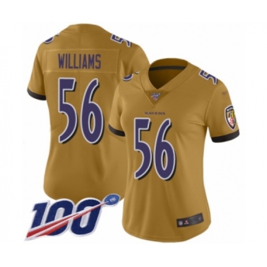 >Women's Baltimore Ravens #56 Tim Williams Limited Gold Inverted Legend 100th Season Football Jersey