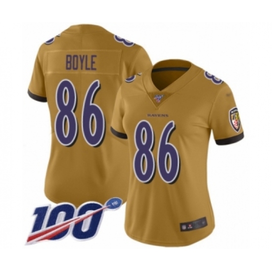 Women's Baltimore Ravens #86 Nick Boyle Limited Gold Inverted Legend 100th Season Football Jersey