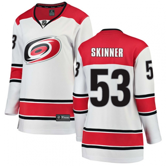 Women's Carolina Hurricanes #53 Jeff Skinner Authentic White Away Fanatics Branded Breakaway NHL Jersey