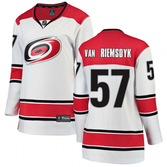 Home>NHL>Carolina Hurricanes>Trevor Van Riemsdyk>Women's Carolina Hurricanes #57 Trevor Van Riemsdyk Authentic White Away Fanatics Branded Breakaway NHL Jersey
