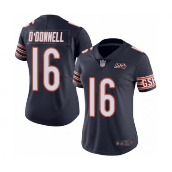 >Women's Chicago Bears #16 Pat O'Donnell Navy Blue Team Color 100th Season Limited Football Jersey