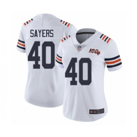 Women's Chicago Bears #40 Gale Sayers White 100th Season Limited Football Jersey