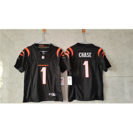 >Women's Cincinnati Bengals #1 Ja'Marr Chase Black F.U.S.E. Vapor Football Stitched Jersey(Run Small)