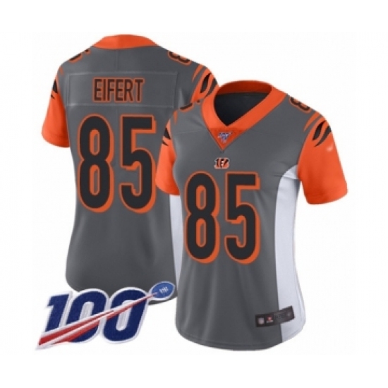 >Women's Cincinnati Bengals #85 Tyler Eifert Limited Silver Inverted Legend 100th Season Football Jersey
