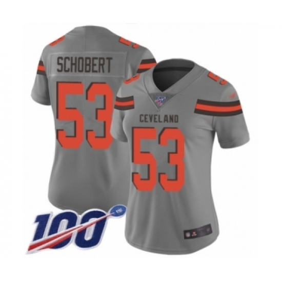 Women's Cleveland Browns #53 Joe Schobert Limited Gray Inverted Legend 100th Season Football Jersey