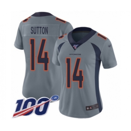 >Women's Denver Broncos #14 Courtland Sutton Limited Silver Inverted Legend 100th Season Football Jersey