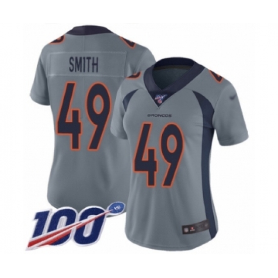 Women's Denver Broncos #49 Dennis Smith Limited Silver Inverted Legend 100th Season Football Jersey