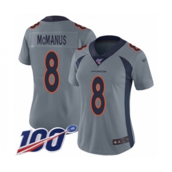 Women's Denver Broncos #8 Brandon McManus Limited Silver Inverted Legend 100th Season Football Jersey
