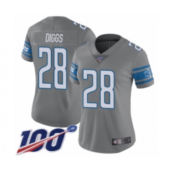 >Women's Detroit Lions #28 Quandre Diggs Limited Steel Rush Vapor Untouchable 100th Season Football Jersey