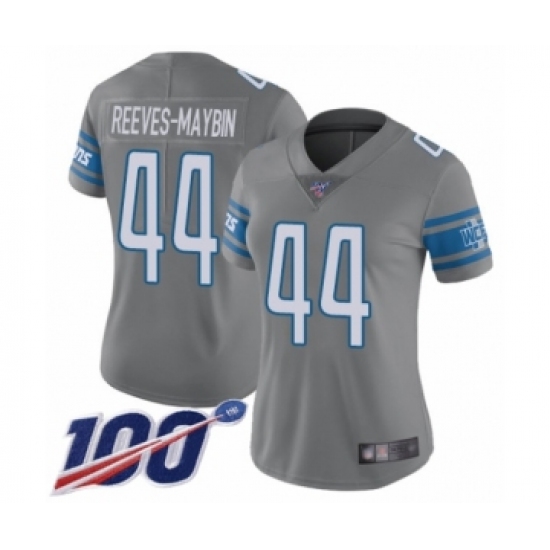 >Women's Detroit Lions #44 Jalen Reeves-Maybin Limited Steel Rush Vapor Untouchable 100th Season Football Jersey