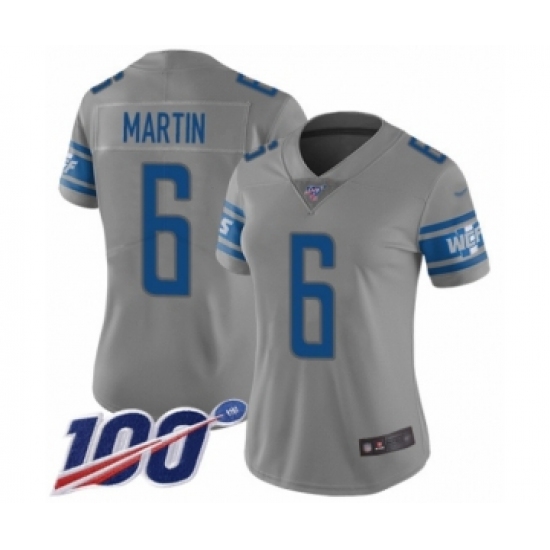 >Women's Detroit Lions #6 Sam Martin Limited Gray Inverted Legend 100th Season Football Jersey