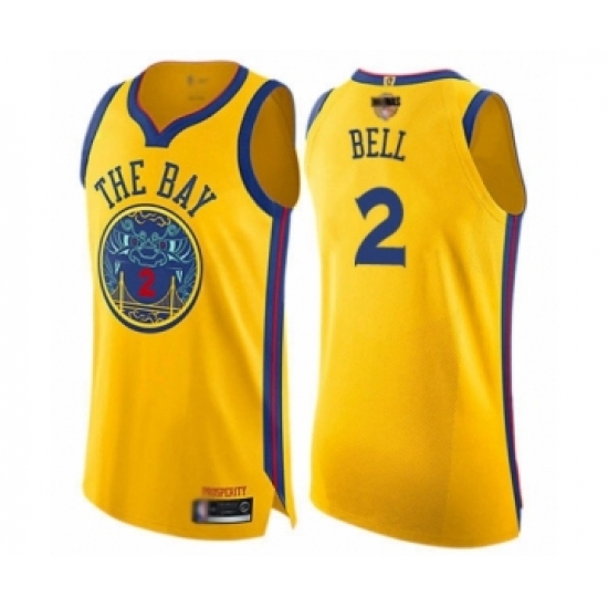Men's Golden State Warriors #2 Jordan Bell Swingman Gold 2019 Basketball Finals Bound Basketball Jersey - City Edition