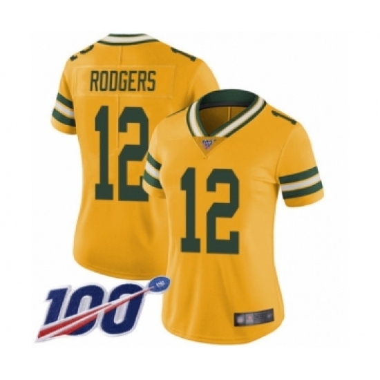 Women's Green Bay Packers #12 Aaron Rodgers Limited Gold Rush Vapor Untouchable 100th Season Football Jersey