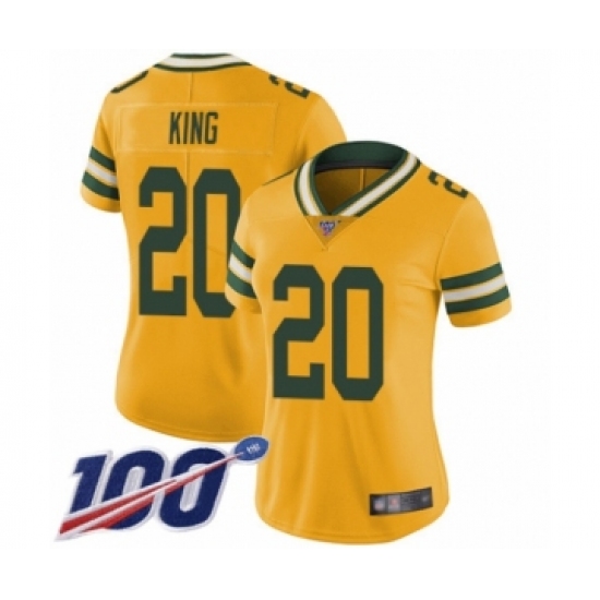 >Women's Green Bay Packers #20 Kevin King Limited Gold Rush Vapor Untouchable 100th Season Football Jersey