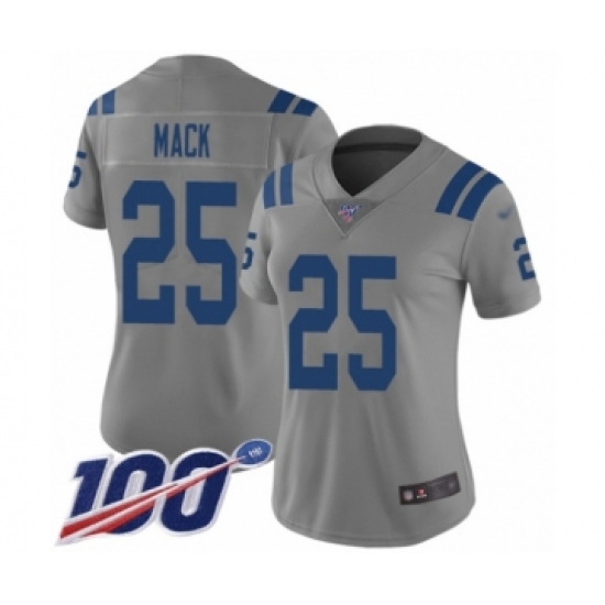 >Women's Indianapolis Colts #25 Marlon Mack Limited Gray Inverted Legend 100th Season Football Jersey