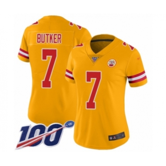 Women's Kansas City Chiefs #7 Harrison Butker Limited Gold Inverted Legend 100th Season Football Jersey