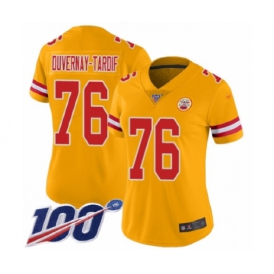 >Women's Kansas City Chiefs #76 Laurent Duvernay-Tardif Limited Gold Inverted Legend 100th Season Football Jersey