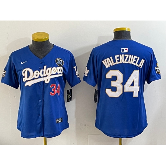 >Women's Los Angeles Dodgers #34 Toro Valenzuela blue Gold 2024 World Series With Fernando Memorial Limited Stitched Baseball Jersey