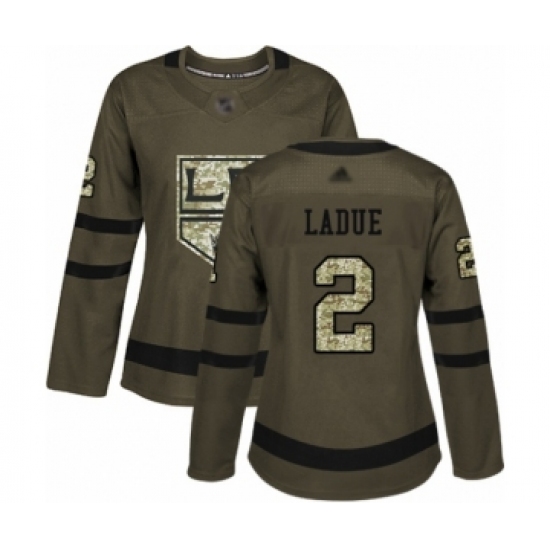 Women's Los Angeles Kings #2 Paul LaDue Authentic Green Salute to Service Hockey Jersey