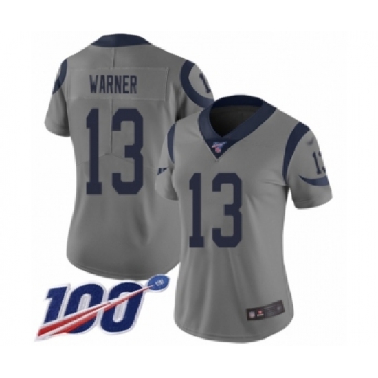 Women's Los Angeles Rams #13 Kurt Warner Limited Gray Inverted Legend 100th Season Football Jersey