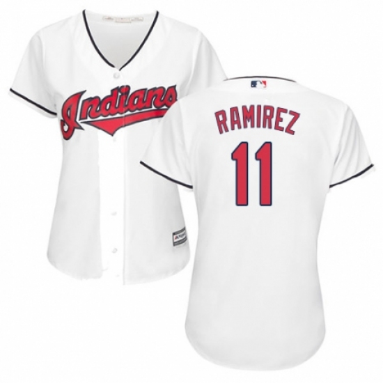 >Women's Majestic Cleveland Indians #11 Jose Ramirez Replica White Home Cool Base MLB Jersey