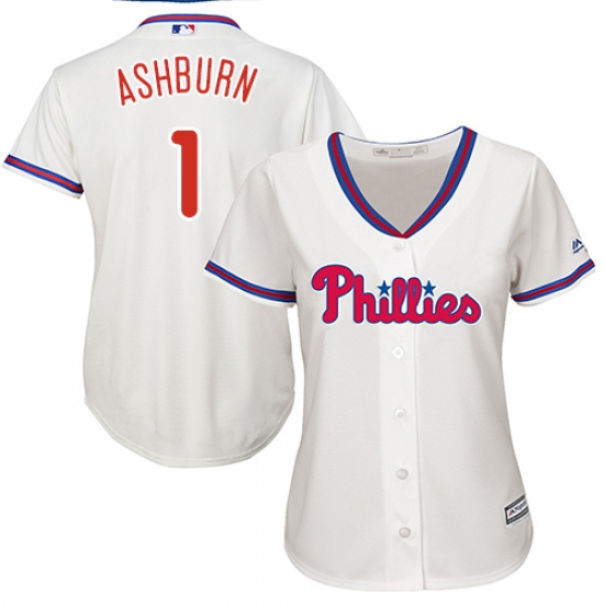 Women's Majestic Philadelphia Phillies #1 Richie Ashburn Replica Cream Alternate Cool Base MLB Jersey