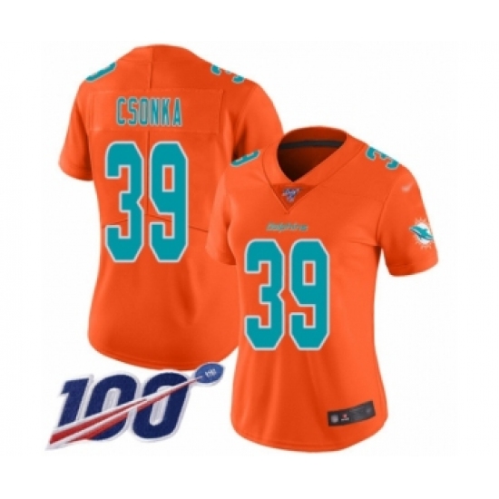 >Women's Miami Dolphins #39 Larry Csonka Limited Orange Inverted Legend 100th Season Football Jersey