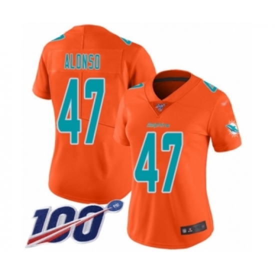 >Women's Miami Dolphins #47 Kiko Alonso Limited Orange Inverted Legend 100th Season Football Jersey