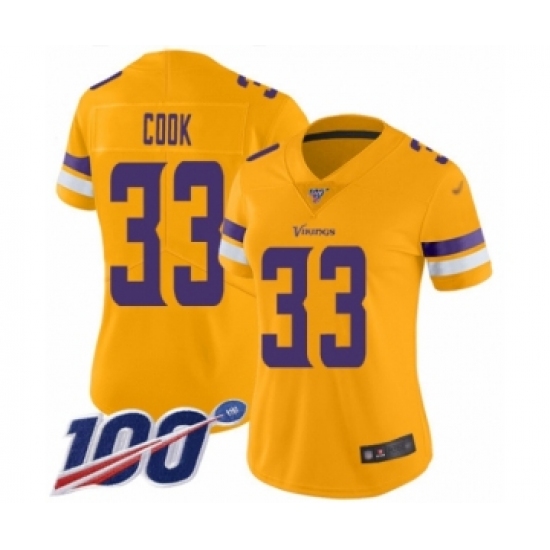 >Women's Minnesota Vikings #33 Dalvin Cook Limited Gold Inverted Legend 100th Season Football Jersey