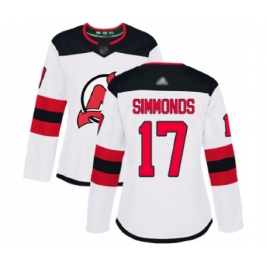 Women's New Jersey Devils #17 Wayne Simmonds Authentic White Away Hockey Jersey