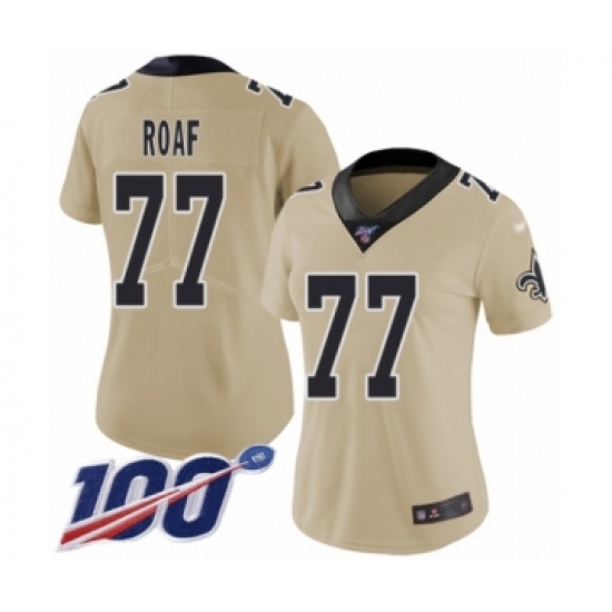 >Women's New Orleans Saints #77 Willie Roaf Limited Gold Inverted Legend 100th Season Football Jersey