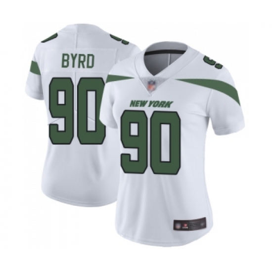 >Women's New York Jets #90 Dennis Byrd White Vapor Untouchable Limited Player Football Jersey