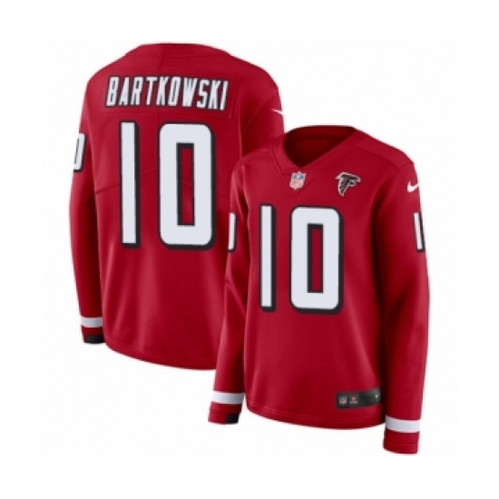 >Women's Nike Atlanta Falcons #10 Steve Bartkowski Limited Red Therma Long Sleeve NFL Jersey