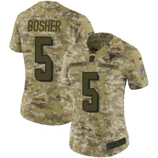 >Women's Nike Atlanta Falcons #5 Matt Bosher Limited Camo 2018 Salute to Service NFL Jersey