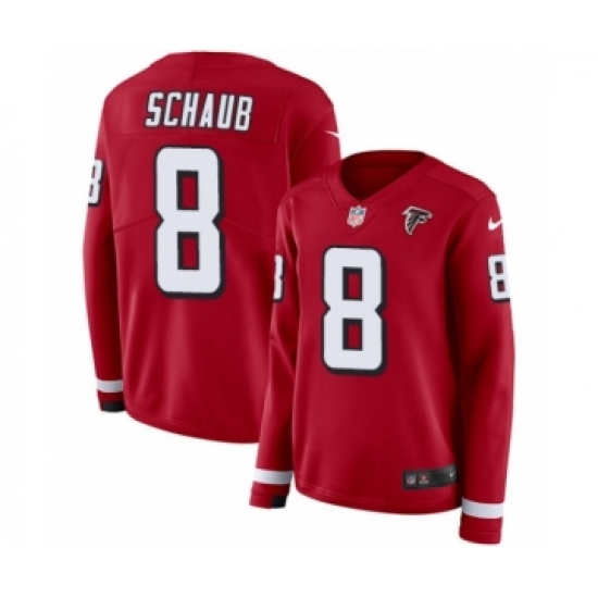 >Women's Nike Atlanta Falcons #8 Matt Schaub Limited Red Therma Long Sleeve NFL Jersey